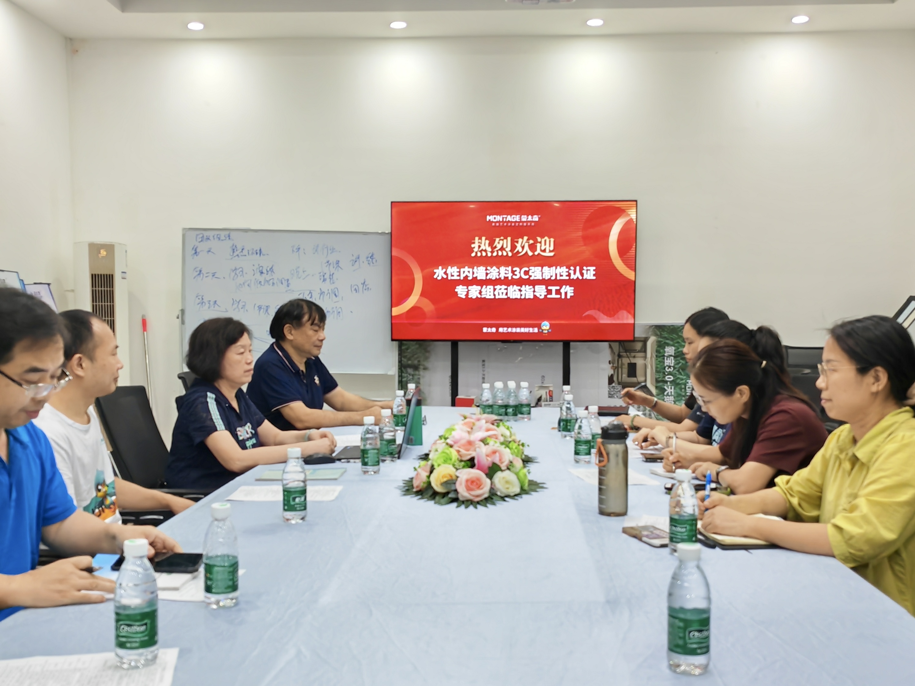 7月5日,北京中化聯合認證中心專家陸海梅、阮旭、石磊一行蒞臨蒙太奇生產基地,對蒙太奇藝術水漆的全線產品進行深入的3C認證審核與指導。僅歷時一個月,蒙太奇便成功完成了水性內墻涂料3C強制認證審核,成為全國首批通過3C認證審核的藝術涂裝品牌。