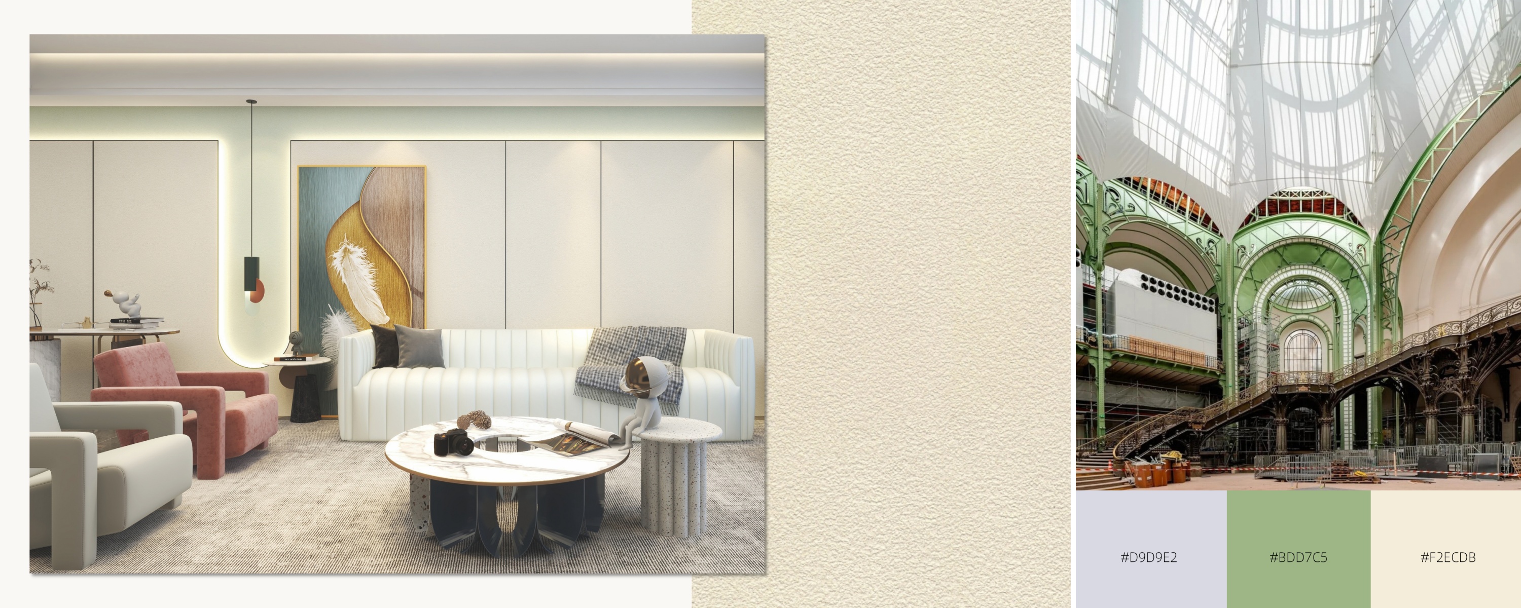 蒙太奇的氧寶3.0流行色彩,運用14種趨勢色彩透過不同的藝術涂料,進行不同的空間表達,其中的煥新紫、奶酪薄荷、琦想橙、離火紅,與巴黎奧運會核心配色紫、綠、橙撞了個滿懷。衍生到家居美學,選擇極具藝術性的配色,大膽的撞色與明快的視覺呈現,為家居色彩美學提供天花板級別的參考。