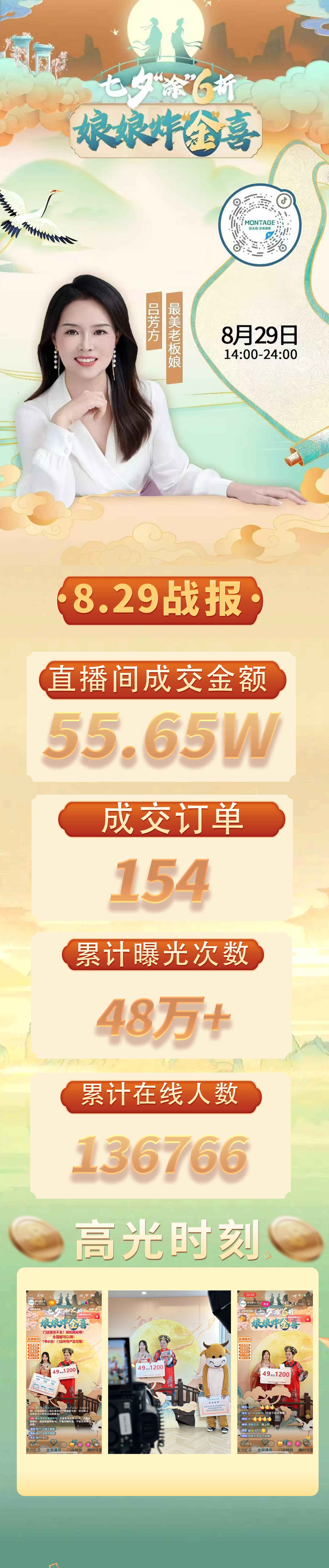 活動最大亮點當(dāng)屬蒙太奇聯(lián)合創(chuàng)始人、“藝術(shù)涂料最美老板娘”呂芳方親臨直播現(xiàn)場。她以專業(yè)視角從色彩搭配、工藝講解等維度,為觀眾深度解答藝術(shù)漆選購疑問,在多重福利的沖擊下,直播間氛圍一度達到高潮,圍觀人數(shù)持續(xù)暴漲。最終,直播間以55.65萬元,累計曝光次數(shù)48萬+的亮眼數(shù)據(jù),為這場巔峰盛宴交出震撼答卷!這一成績不僅印記了消費者對蒙太奇藝術(shù)漆的高度認可,更彰顯出品牌實力的全面爆發(fā)。