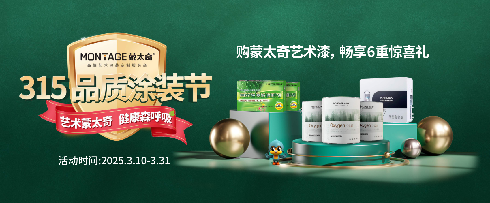 315活動期間,線下購買蒙太奇指定套餐尊享工廠直補60%,交款滿額送千元凈水機,更有315元搶爆款氧寶3.0小羊皮/蛋殼光,讓消費者以超值價拿下高品質藝術涂料!