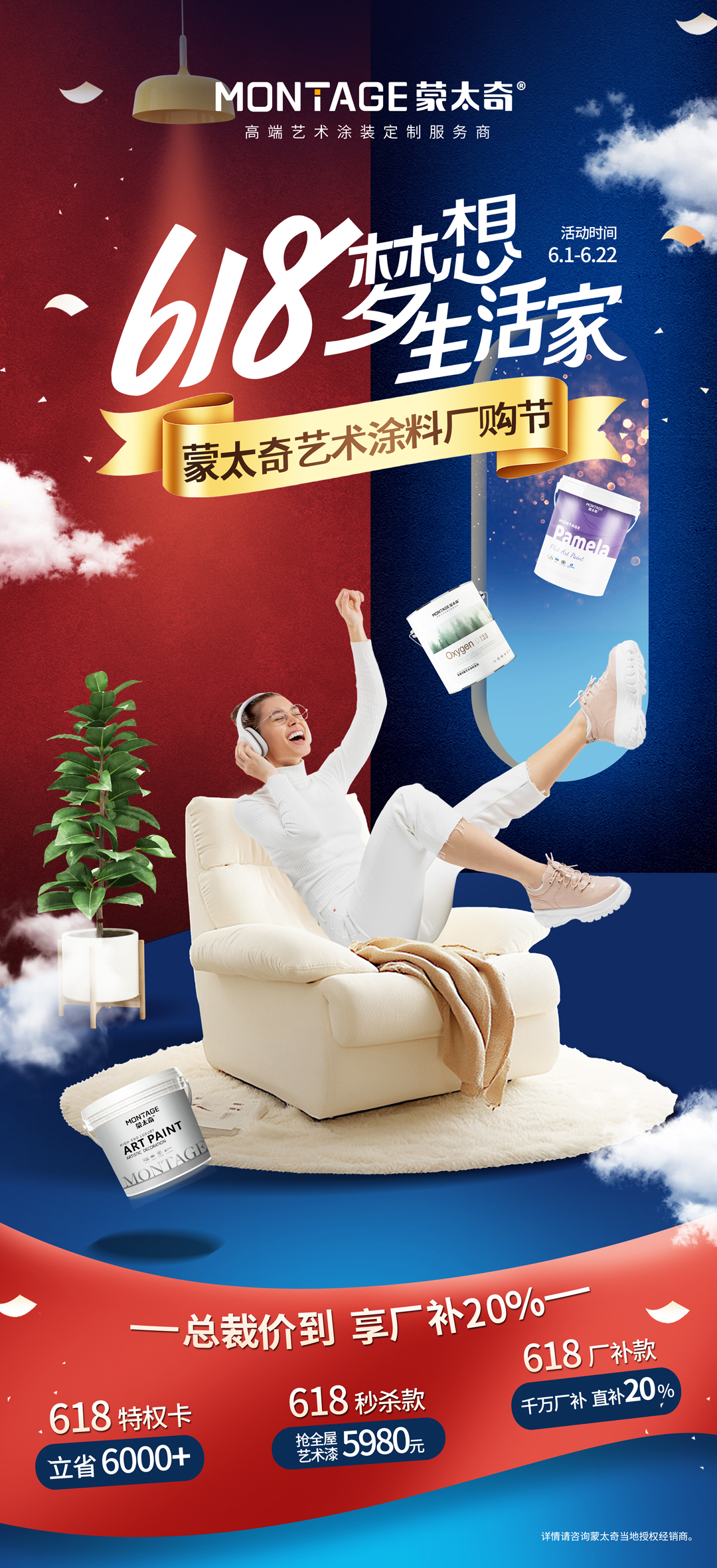6月1日至22日,蒙太奇藝術涂料廠購節狂歡來襲!作為年中力度最大的家裝盛宴,本次活動以“總裁直播+廠價直補+新品首發”三重核爆福利,助力消費者輕松打造高顏值家居空間。無需比價、無需等待,現在入手正當時!