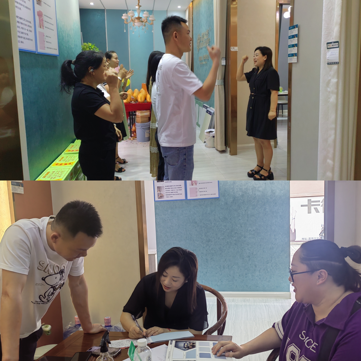 本次品牌終端賦能行活動(dòng),旨在助力門店突破動(dòng)銷瓶頸,快速搶占市場(chǎng),在當(dāng)?shù)匾槐娝囆g(shù)涂裝門店中脫穎而出。王業(yè)老師通過(guò)資源梳理、銷售話術(shù)培訓(xùn)、簽單技巧指導(dǎo)、新媒體引流示范等多方位賦能,基于當(dāng)?shù)厮囆g(shù)涂料市場(chǎng)的競(jìng)爭(zhēng)格局和消費(fèi)者消費(fèi)需求,為門店提供了一套極具針對(duì)性、操作性和有效性的獲客、邀約、銷售與簽單解決方案,精準(zhǔn)匹配并鎖定目標(biāo)客戶群體,帶動(dòng)終端聚勢(shì)沖刺。