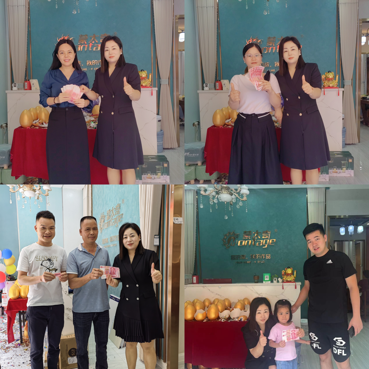 活動(dòng)結(jié)束后,廣西扶綏專賣店老板歐總表示答謝:非常感謝這次總部能派王老師來(lái)支持扶綏,這次我們十幾天戰(zhàn)斗在一起,王老師不懼困難,不放棄團(tuán)隊(duì)任何一個(gè)人,堅(jiān)定執(zhí)著的精神打動(dòng)了我們,活動(dòng)還有一天才結(jié)束,我們已經(jīng)完成任務(wù),團(tuán)隊(duì)依然有激情爭(zhēng)取超額完成受 公司的活動(dòng)幫扶,扶商愛商是我們經(jīng)銷商的服氣,祝我們蒙太奇越來(lái)越好!所有經(jīng)銷商都能賺到盆滿缽滿!